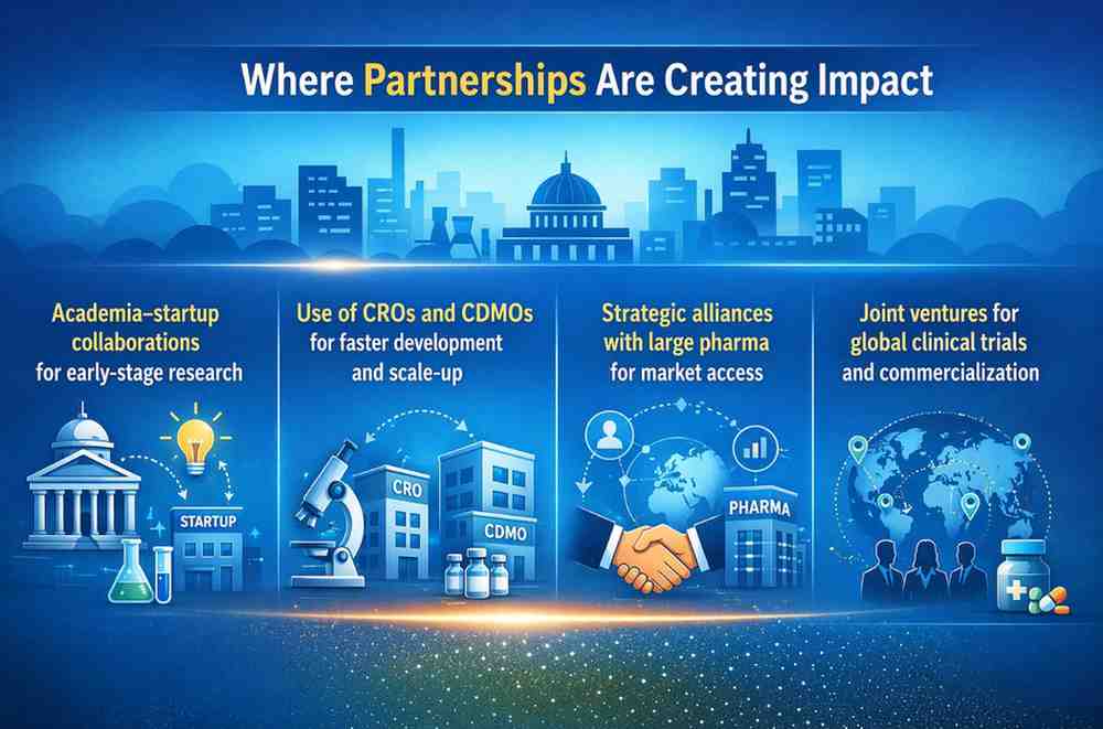These collaborations also play a critical role in de-risking innovation. By sharing costs and expertise, startups can focus on their core strength—scientific discovery—while relying on partners for execution support.