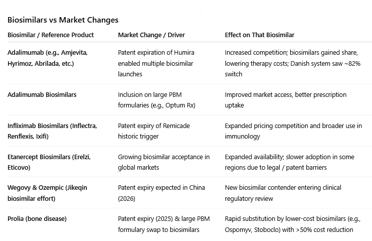 Between 2025 and 2028, multiple high-revenue biologics are scheduled to lose exclusivity. These products collectively account for tens of billions in annual sales.