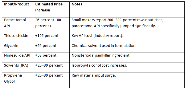 Here’s a snapshot of recent API and input cost inflation in India between late 2025 and early 2026: